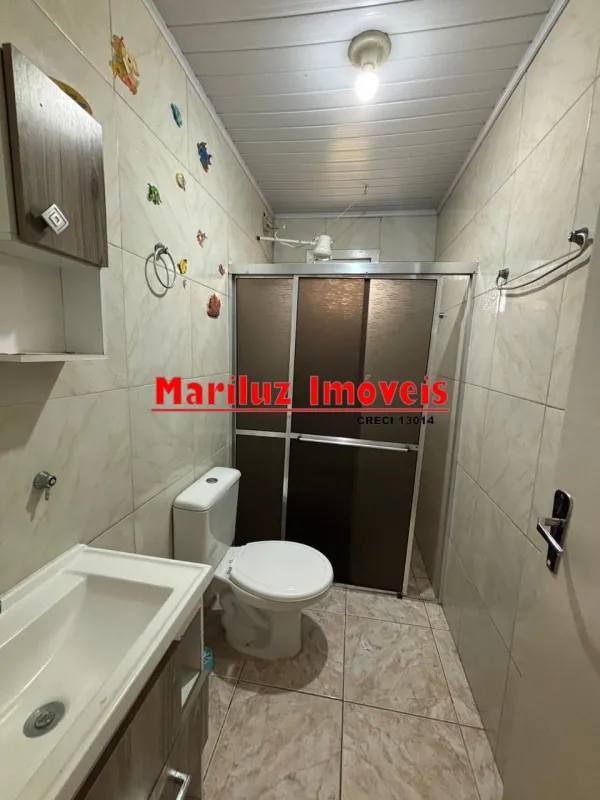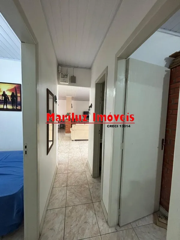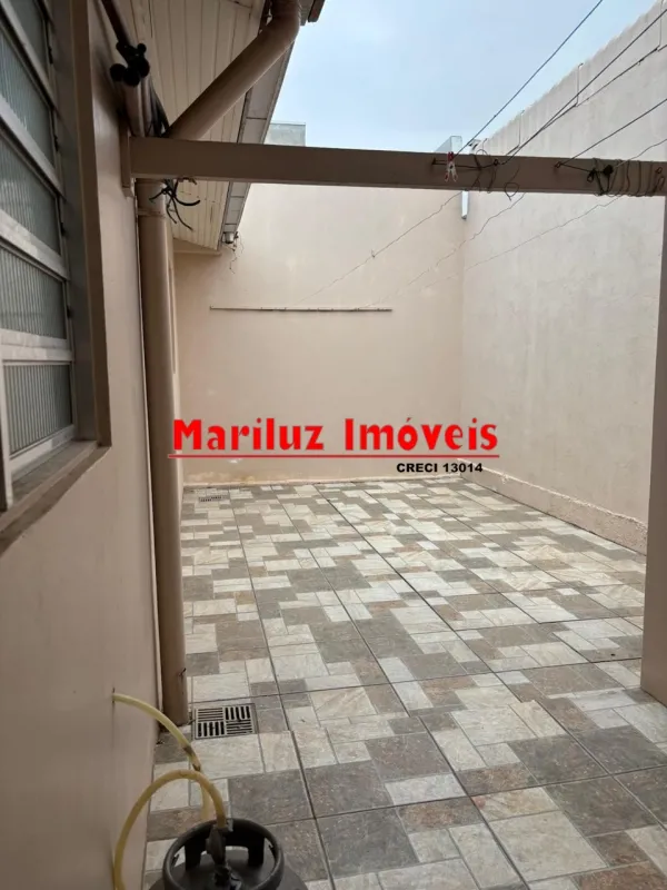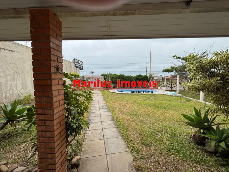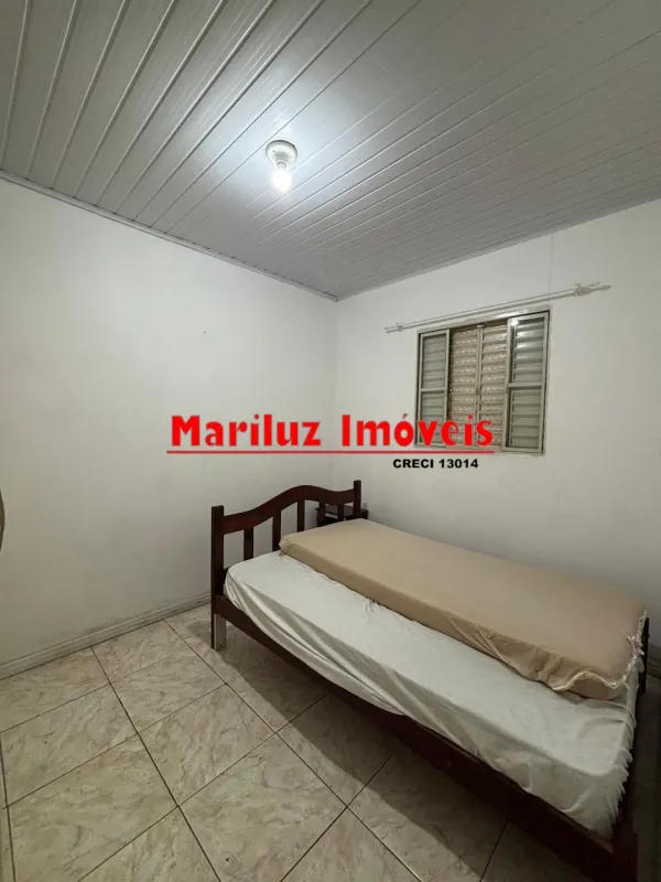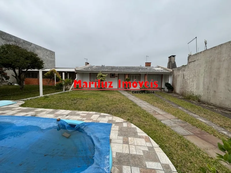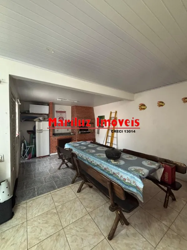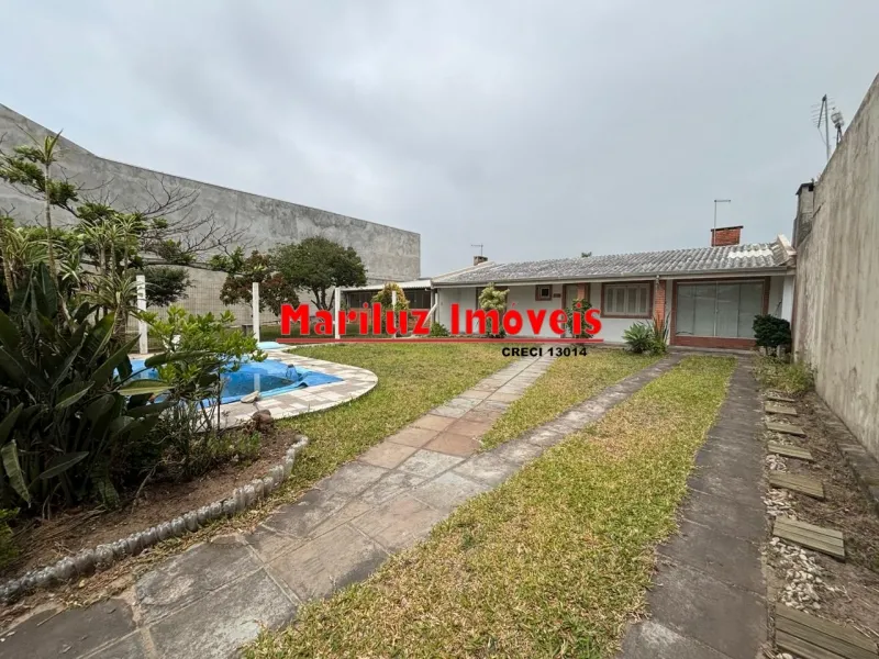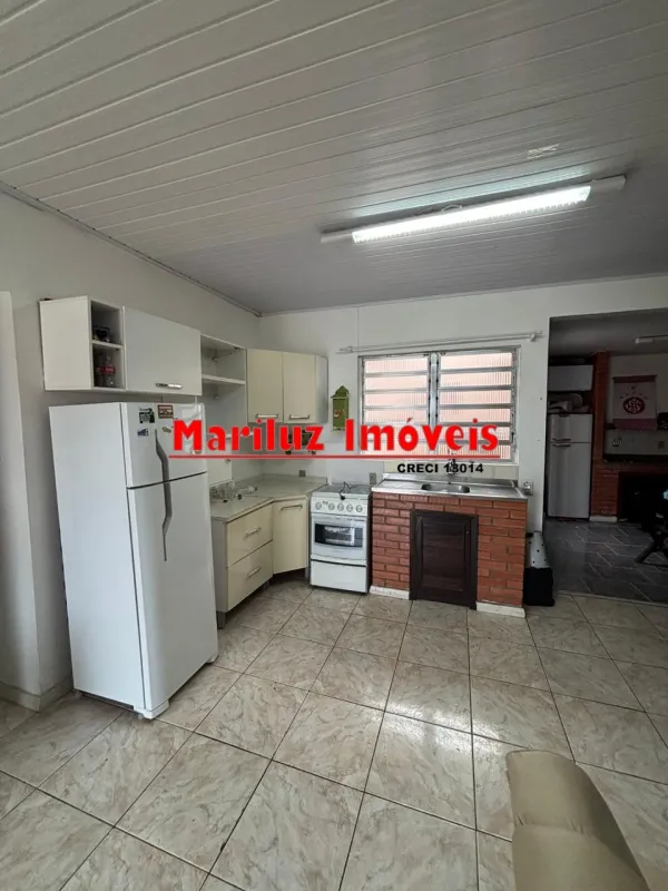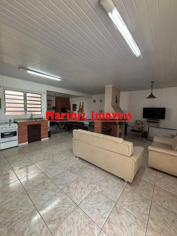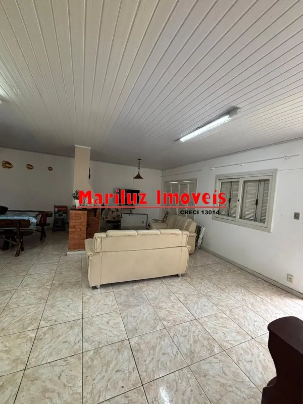 Residência de alvenaria com 3 dormitórios e 2 banheiros com salão de festas.