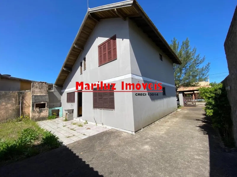 Sobrado próximo do mar com três dormitórios, sendo dois dormitórios na parte superior, dois banheiros, área de serviço, cozinha, sala de estar e sala de jantar, abrigo para carro com churrasqueira.